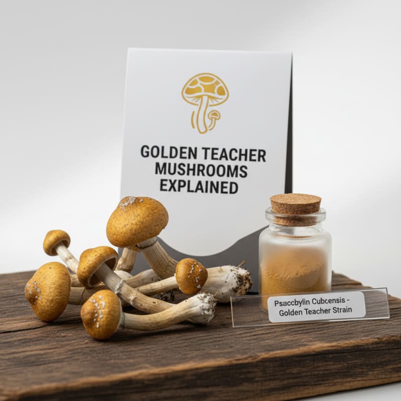 Golden Teacher mushrooms are one of the most widely recognized strains of Psilocybe cubensis.